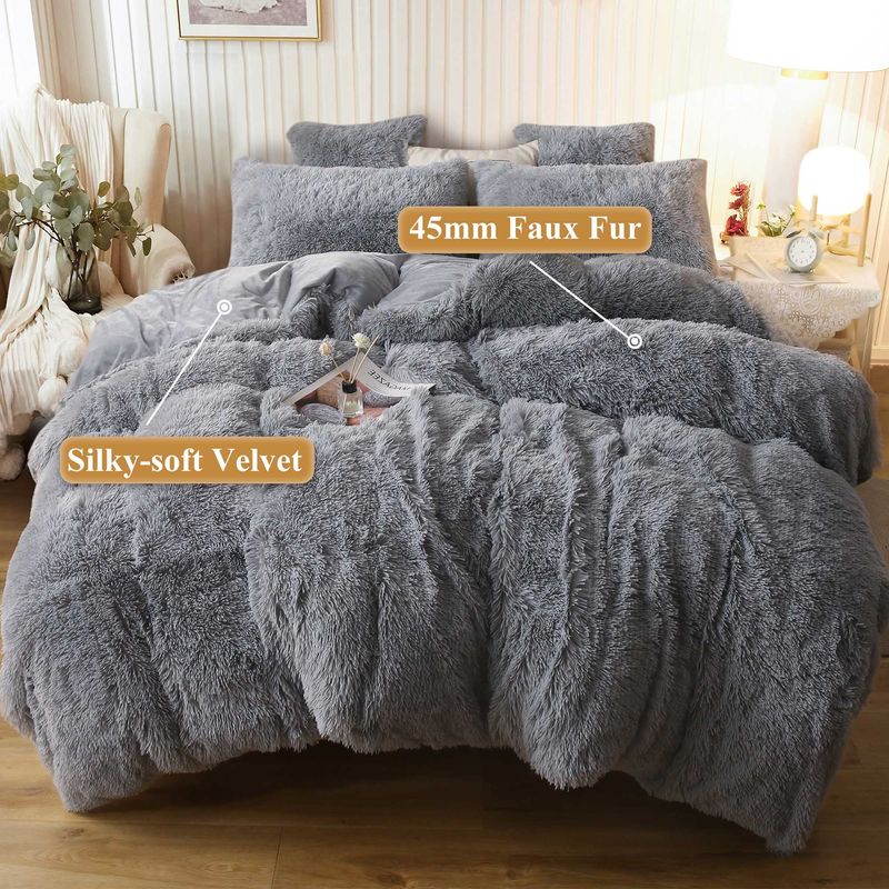 Instrucciones de lavado: dale la vuelta a esta funda de edredón peluda, lava a máquina o a mano con agua fría, seca suave y a baja temperatura. Sin calor. No usar blanqueador. No planchar. Consulta la etiqueta de cuidado.