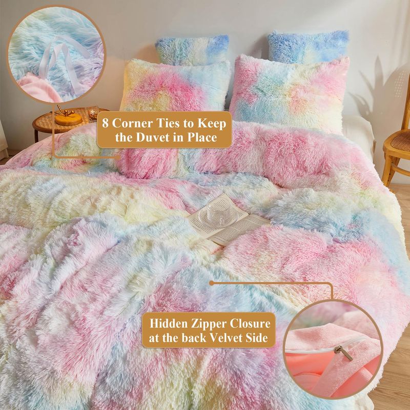 Instrucciones de lavado: dale la vuelta a esta funda de edredón peluda, lava a máquina o a mano con agua fría, seca suave y a baja temperatura. Sin calor. No usar blanqueador. No planchar. Consulta la etiqueta de cuidado.