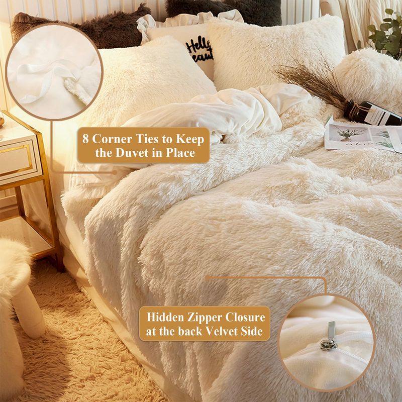 XeGe Acogedora funda de edredón de felpa, lujosa funda de edredón suave y esponjosa de color liso, 1