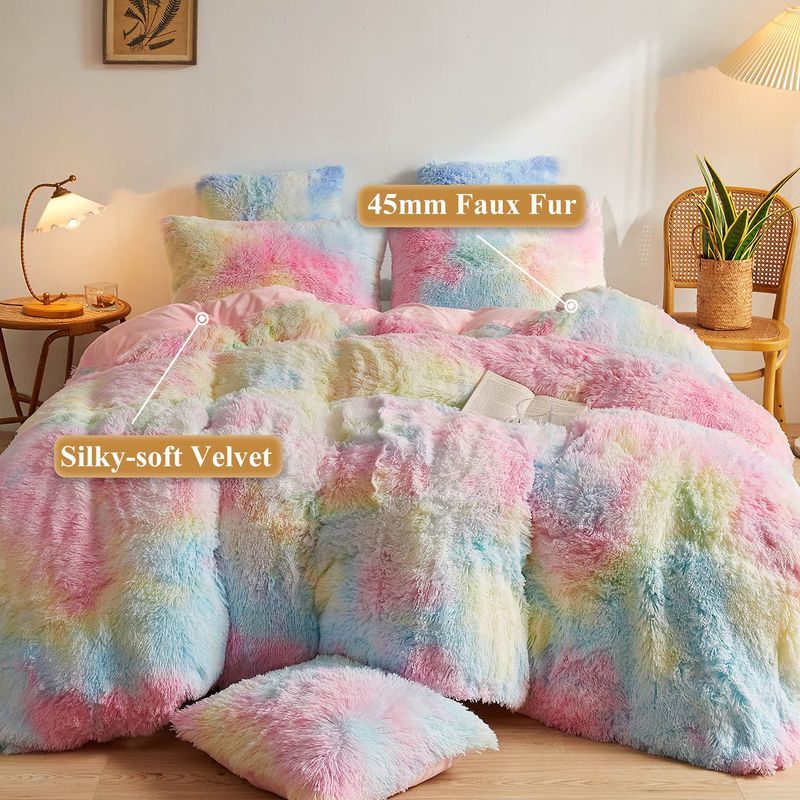 Instrucciones de lavado: dale la vuelta a esta funda de edredón peluda, lava a máquina o a mano con agua fría, seca suave y a baja temperatura. Sin calor. No usar blanqueador. No planchar. Consulta la etiqueta de cuidado.