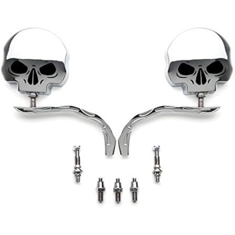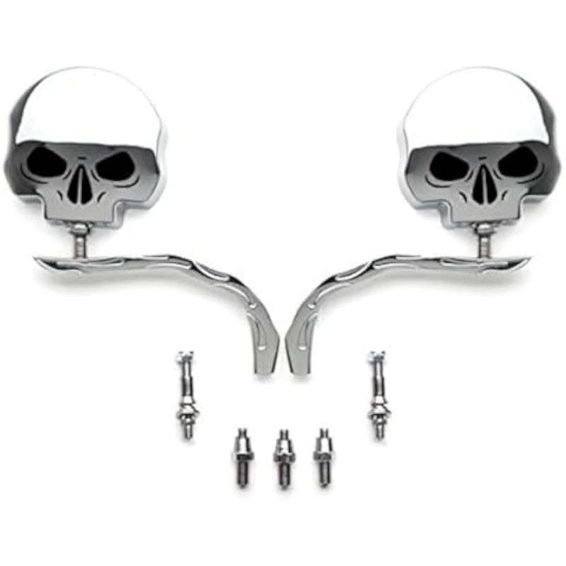 XKMT-skull - Espejos laterales cromados con llama compatibles con Harley Road King, Electra Street