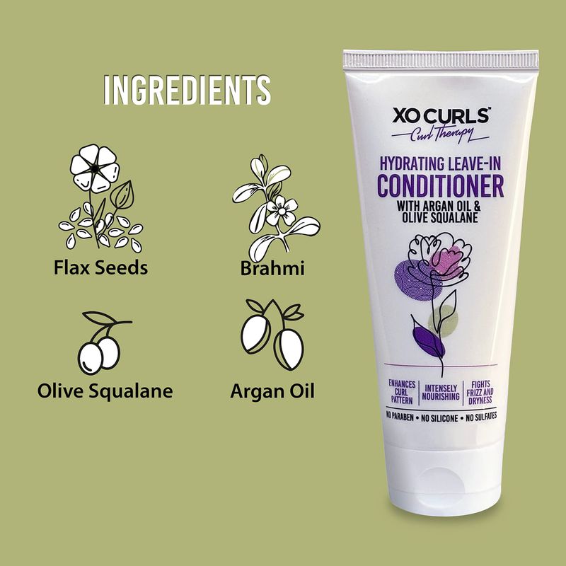 XO Curls Acondicionador hidratante sin enjuague con aceite de argán y escualano de oliva de 3.4