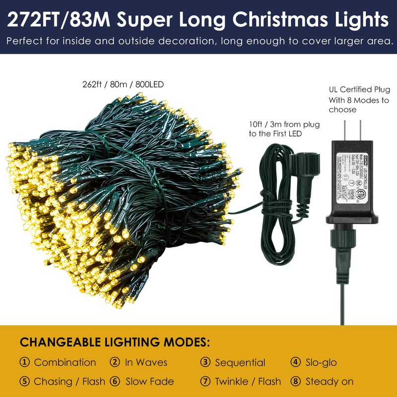 XUNXMAS Luces de Navidad con 300 luces LED de 108 pies que cambian de color con blanco cálido y