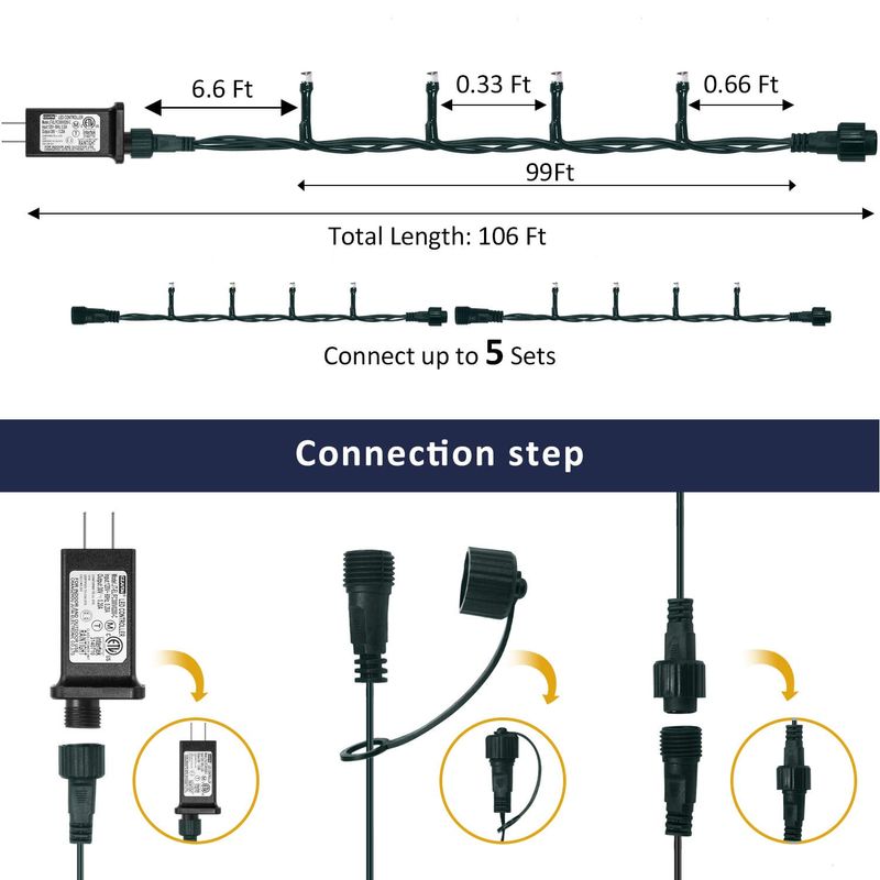 XUNXMAS Luces de Navidad con 300 luces LED de 108 pies que cambian de color con blanco cálido y