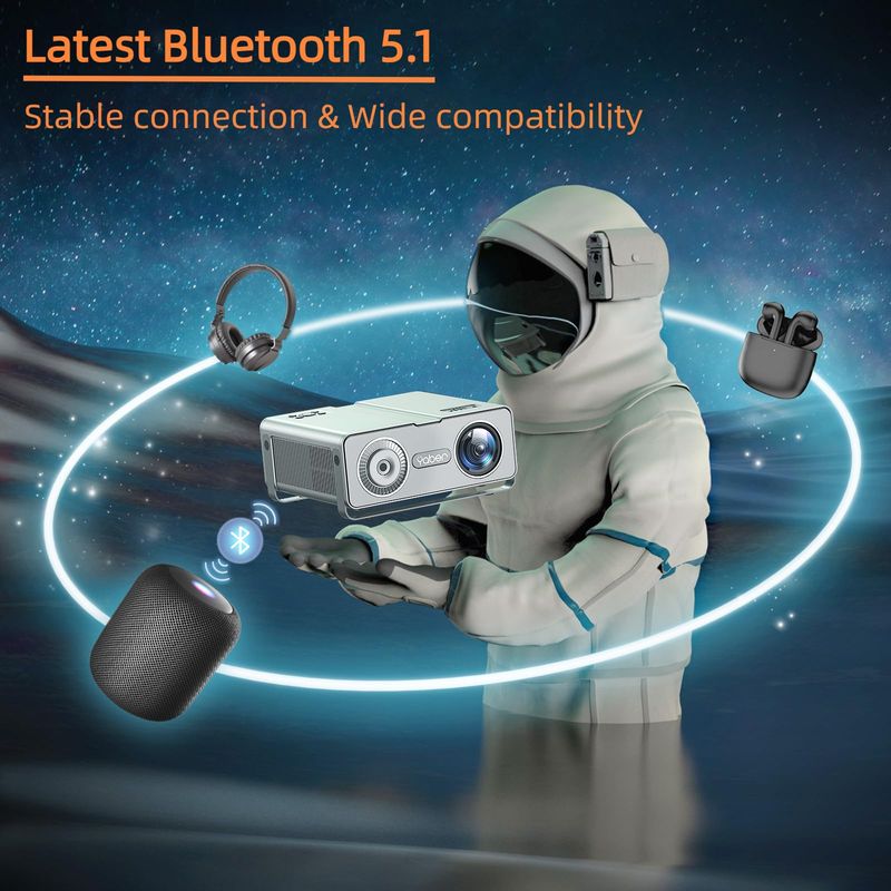 YABER Proyector Bluetooth WiFi 5G, proyector nativo 1080P 4K compatible con bolsa, portátil para uso