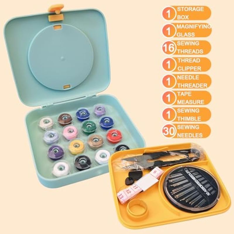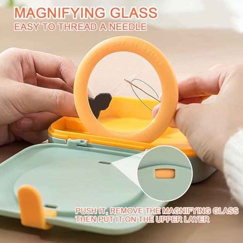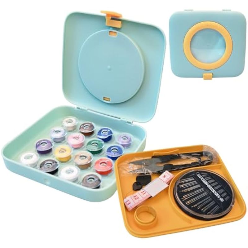 YaCaTaM Kit de costura, caja de coser con lupa, suministros de costura con agujas de coser, hilo de