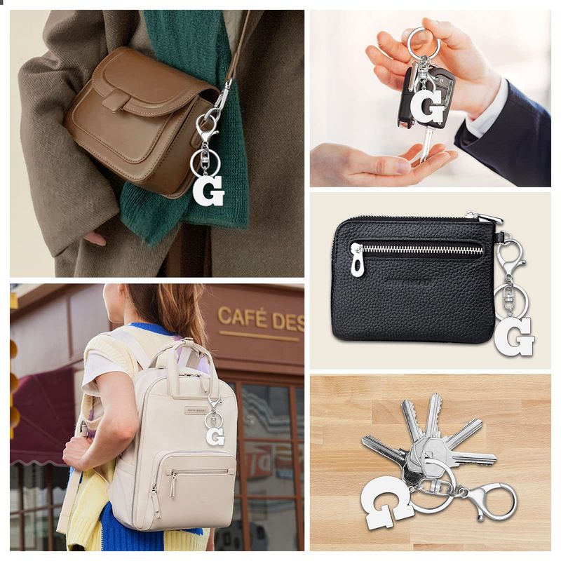 Amplia gama de usos: nuestro llavero con inicial se puede utilizar no solo para colgar llaves de casa y llaveros de automóvil, sino también para decorar varias bolsas como bolsas de maquillaje, mochilas, bolsos, carteras y mucho más. Es una gran opción como un pequeño regalo para familiares o amigos.