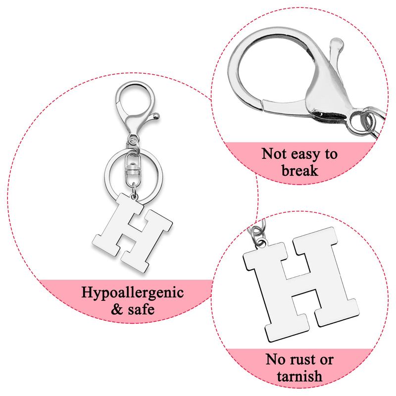 Amplia gama de usos: nuestro llavero con inicial se puede utilizar no solo para colgar llaves de casa y llaveros de automóvil, sino también para decorar varias bolsas como bolsas de maquillaje, mochilas, bolsos, carteras y mucho más. Es una gran opción como un pequeño regalo para familiares o amigos.