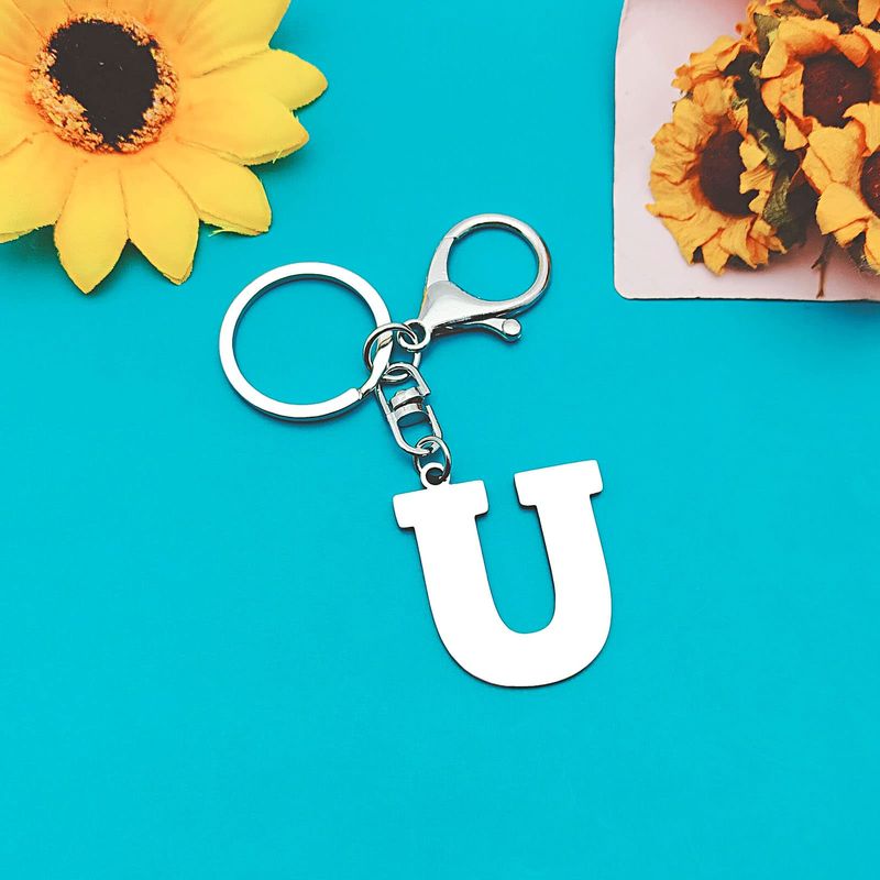 ?Juego de llaveros con letras? El llavero de color blanco K incluye 1 cierre de langosta, 1 llavero y 1 letra inicial.