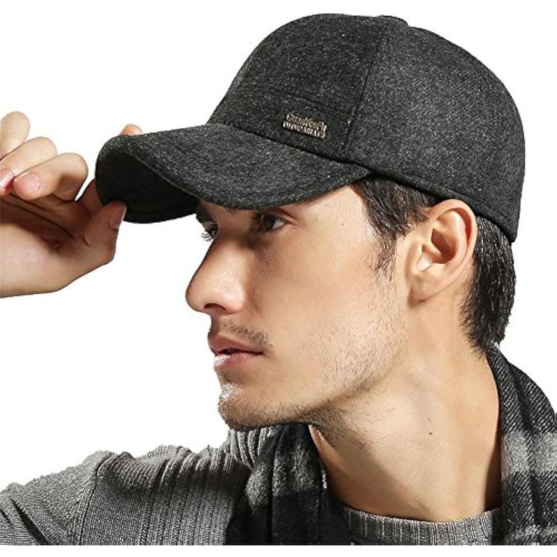 YAKER SOMBRERO DE BéISBOL DE LANA CALIENTE DE INVIERNO DE LOS HOMBRES CON HEBILLA DE METAL DE LAS OREJERAS