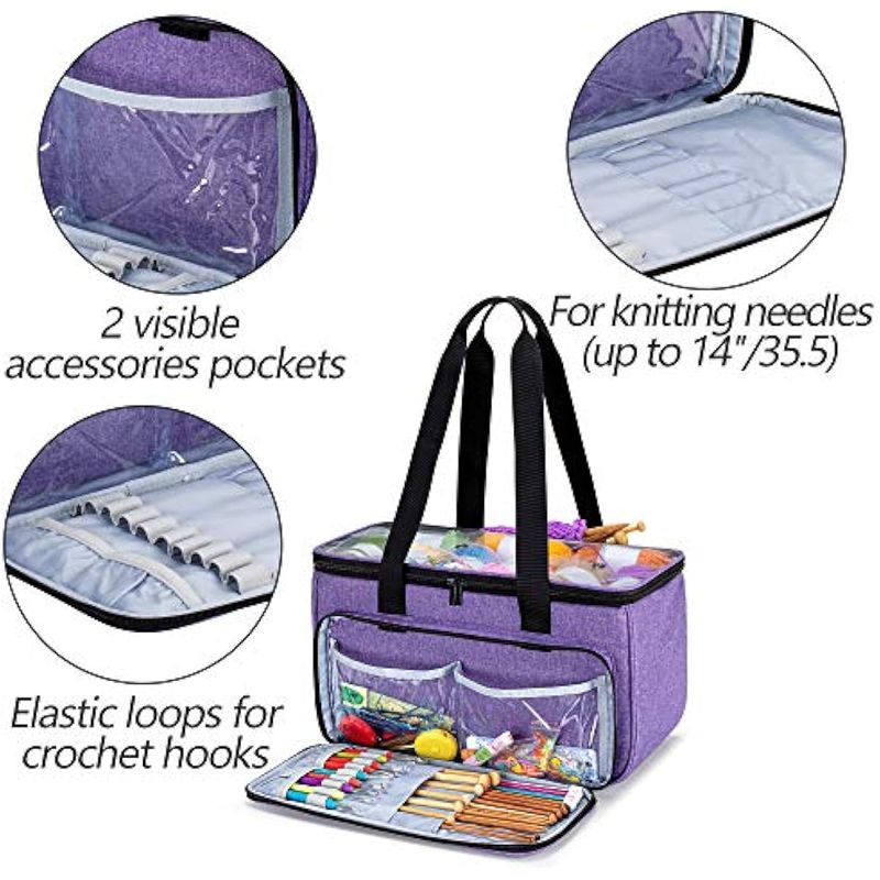 YARWO BOLSA DE HILO DE TEJER, BOLSA DE GANCHILLO CON BOLSILLO PARA PROYECTOS DE WIP, AGUJAS DE TEJER (HASTA 14 PULGADAS) Y MADEJAS DE HILO, MORADO (SOLO BOLSA)
