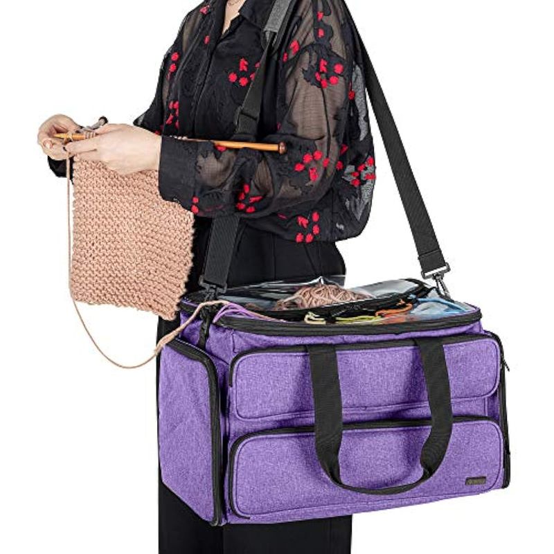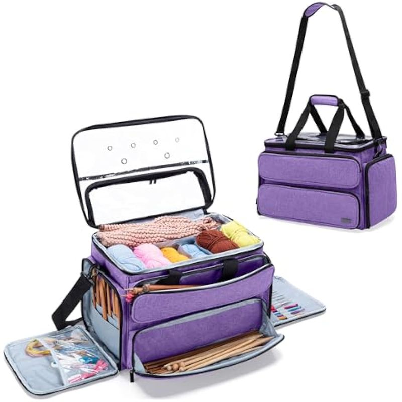 YARWO BOLSA DE TEJER, ORGANIZADOR DE ALMACENAMIENTO DE HILO PARA AGUJAS DE TEJER (HASTA 14 PULGADAS), GANCHOS DE GANCHILLO, AGUJAS CIRCULARES, PROYECTOS Y MADEJAS DE HILO, MORADO (SOLO BOLSA)
