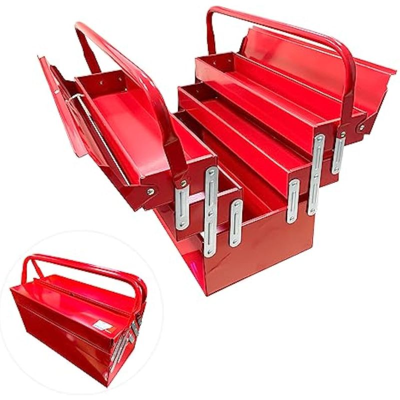 YATOINTO CAJA DE HERRAMIENTAS DE METAL VOLADIZO CAJA DE HERRAMIENTAS DE 18 PULGADAS, 3 CAPAS, 5 BANDEJAS, CAJA DE HERRAMIENTAS PORTáTIL, CAJA DE HERRAMIENTAS PLEGABLE, ORGANIZADOR DE ALMACENAMIENTO PARA ESTUDIO EN CASA, FáBRICA DE REPARACIóN DE AUTOMóVILES, 18 X 8 X 8 PULGADAS