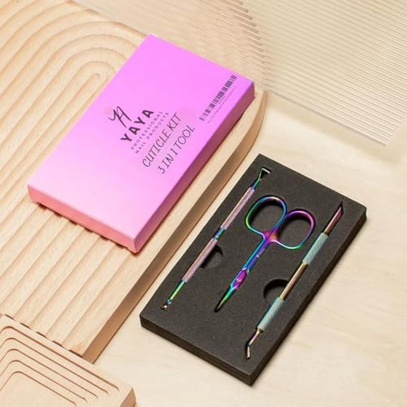 BELLEZA Y SALUDBELLEZA Y CUIDADO CORPORALMANICURA Y PEDICURAYaya - Tijeras de cutícula con empujadores de cutícula, hoja curva extrafina, juego de herramientas