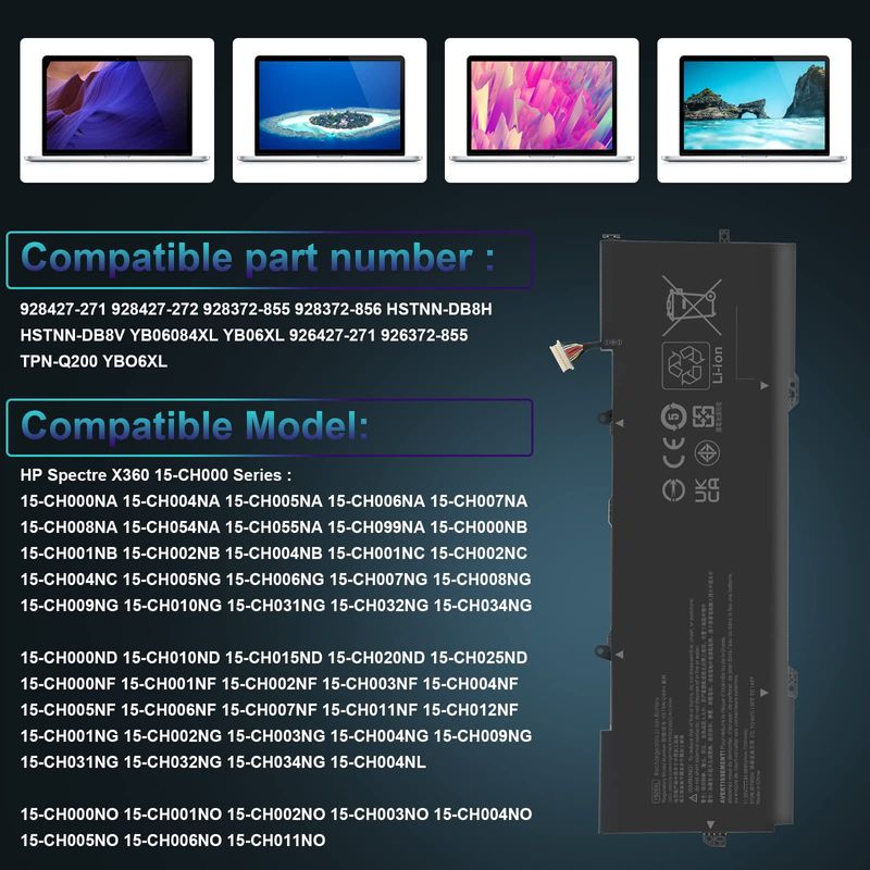 YB06XL 928427-271 - Batería para portátil HP Spectre x360 Convertible 15-CH 15-CH0XX 15-CH000TX