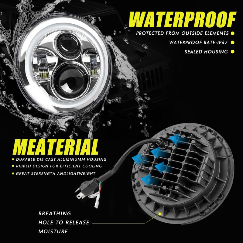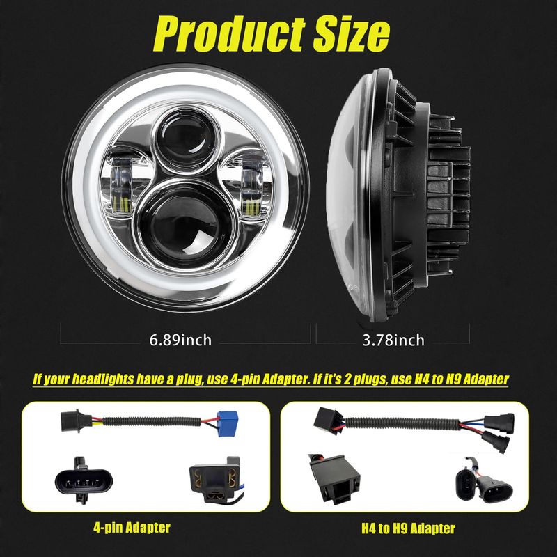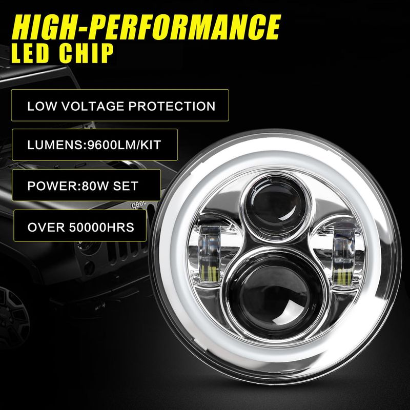 YEEGO DIRECT Faros LED de 7" 4.5 luces de paso de niebla juego cromado para motocicletas