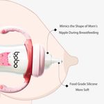 El chupete adopta un diseño de flujo de bloqueo automático, lo que hace que el bebé beba más suavemente. La parte inferior del chupete tiene una válvula reguladora de presión inteligente, equilibrio de presión interna y externa, separación de leche y aire, para evitar que el bebé respire demasiado aire causado por la flatulencia de cólicos.