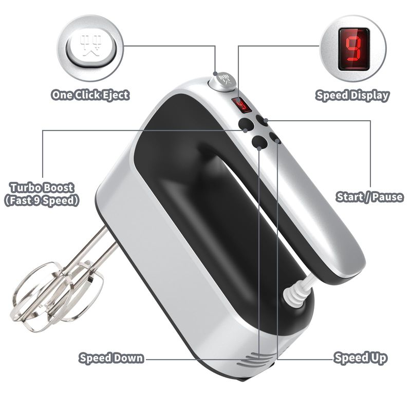 Yomelo Batidora de mano digital de 9 velocidades, motor de 400 W de CC, mezclador de mano para
