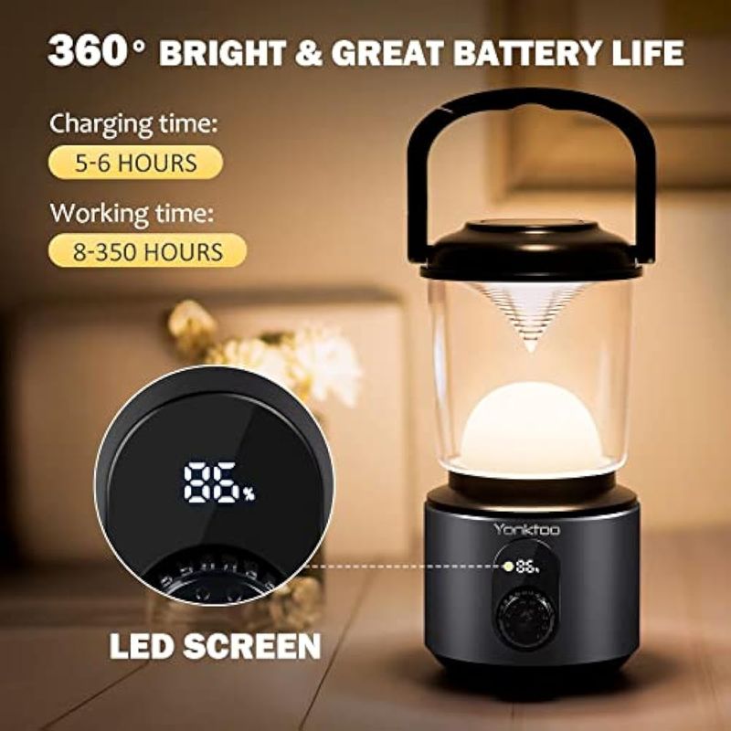 ??Diseño de pantalla LCD?Linterna de Yonktoo con pantalla LCD, muestra la potencia restante y el brillo de la lámpara. La linterna utiliza un puerto USB y un puerto tipo C. El puerto USB es el puerto de salida de energía, y el tipo C es el puerto de entrada de carga. Se tarda de 4 a 8 horas en cargar completamente la batería de la linterna.