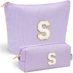 YOOLIFE 2 bolsas de maquillaje con inicial, bolsa de cosméticos, bolsa de maquillaje de viaje,