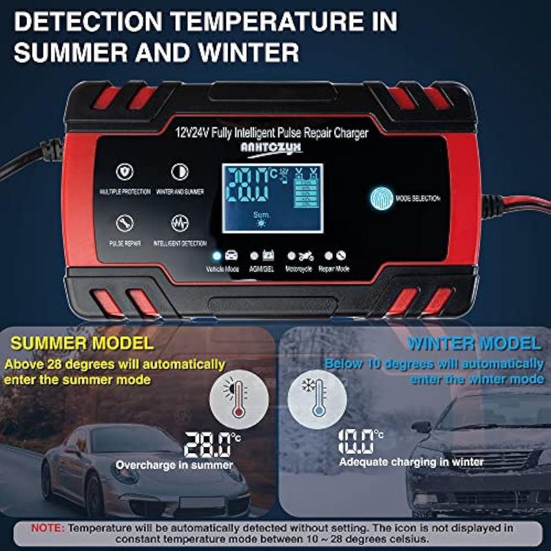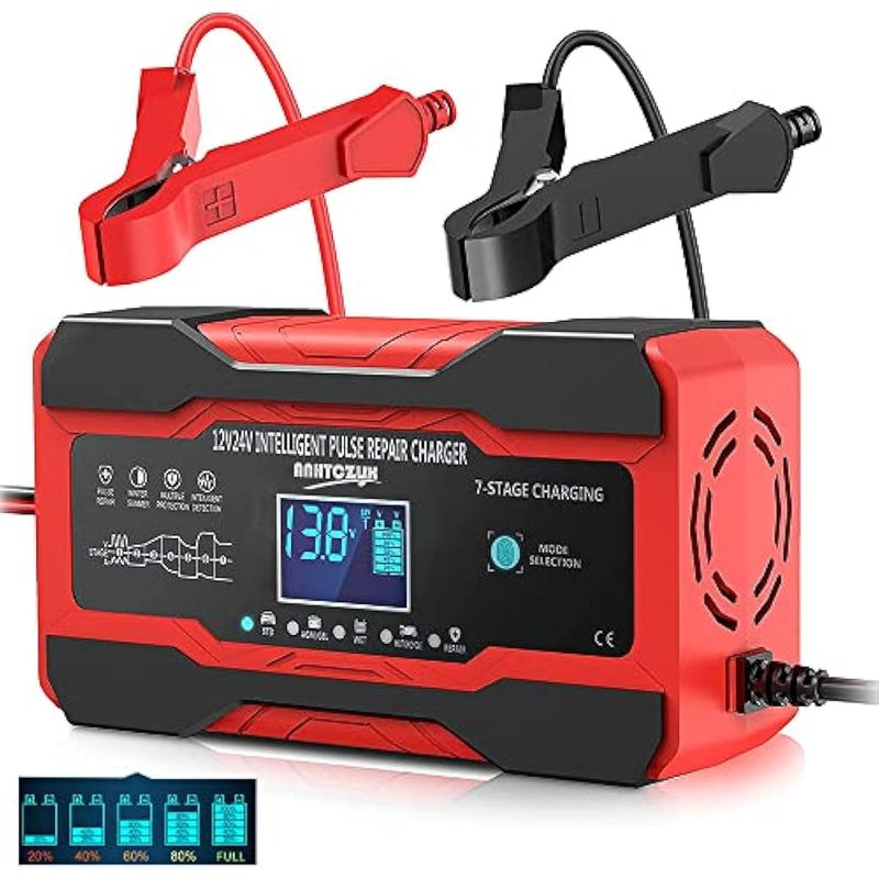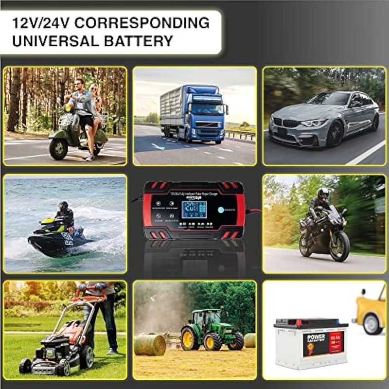 Yooya Cargador de batería de automóvil de 8 amperios, 24 V y 12 V, cargador de batería automotriz,