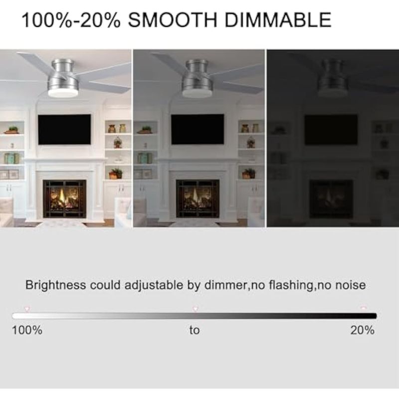 Ventiladores de techo de perfil bajo: el ventilador de techo será más fuerte y duradero con su carcasa de metal y cinco aspas de ventilador de madera, y la construcción elegante y funcional está diseñada para facilitar la limpieza. Con solo 10.5 pulgadas de altura, se puede utilizar en habitaciones con techos bajos. La pantalla acrílica blanca lechosa con módulo LED reemplazable hace que la luz sea suave y no dura. El ventilador de techo tiene 5 aspas de ventilador de doble cara níquel o grano de madera y se puede cambiar libremente con estilo moderno o rústico.