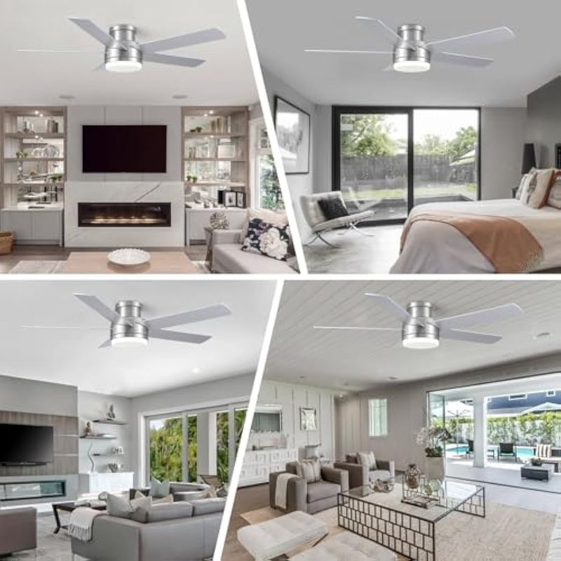 YUHAO Ventilador de techo de níquel cepillado de 52 pulgadas de montaje empotrado con luz y control
