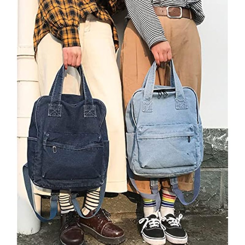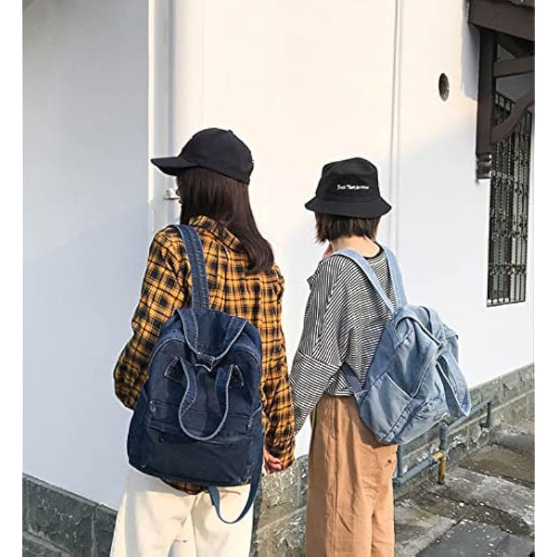 YunZh Mochila de mezclilla estilo casual ligero jeans mochilas clásicas retro viaje mochila, azul