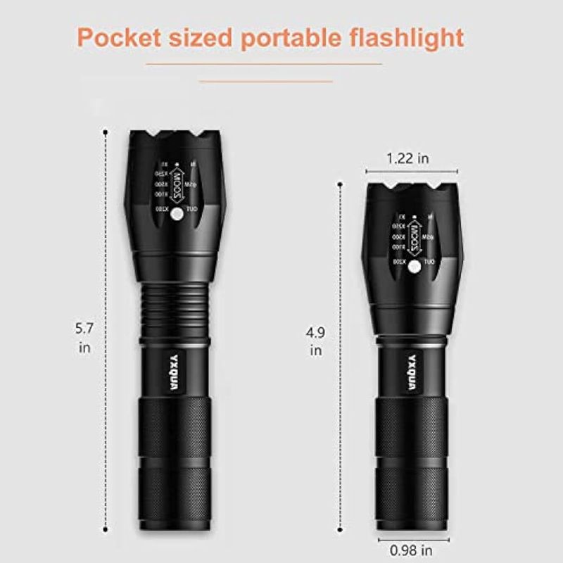 Superbrillante: las potentes linternas LED YXQUA están equipadas con un chip mejorado que produce hasta 1000 lúmenes de salida ultra alta y una vida útil de hasta 50.000 horas.
