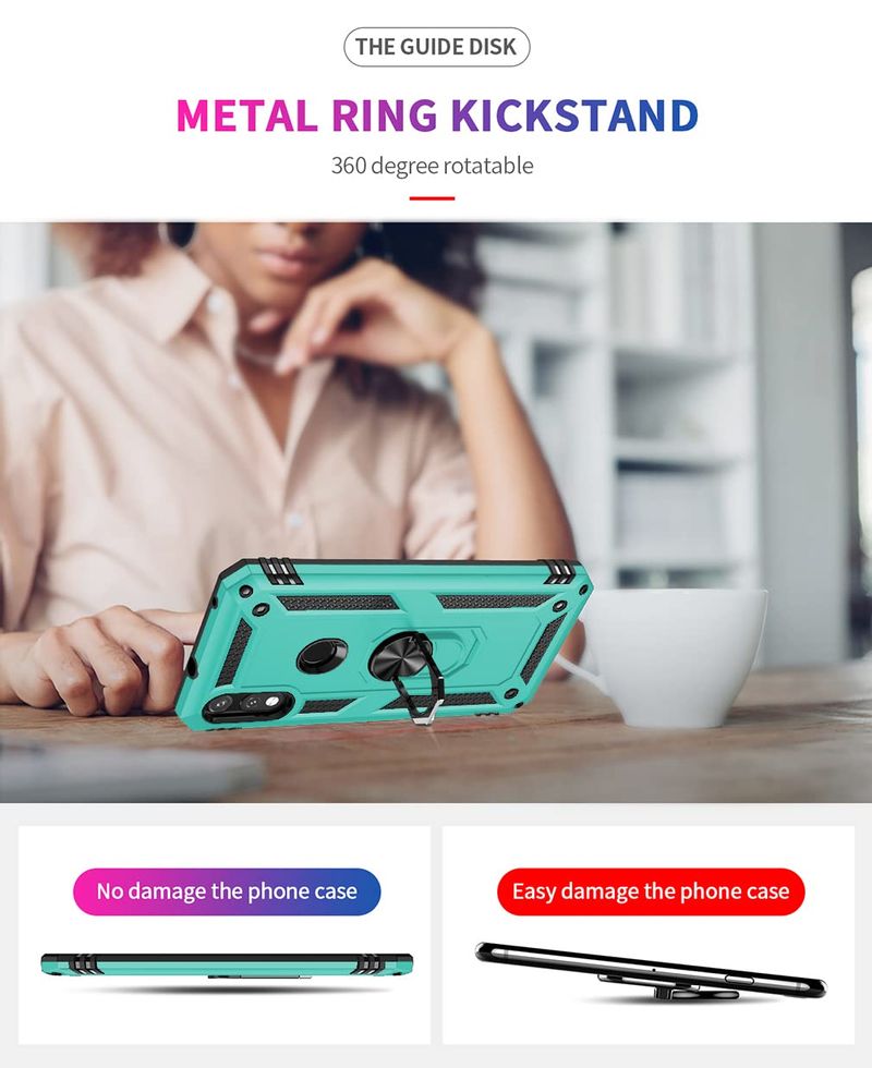 El soporte de anillo de metal puede girar 360°, fácil de girar y resistente en la funda. El soporte integrado te da la comodidad de ver videos y películas con manos libres con la comodidad y estabilidad deseadas.