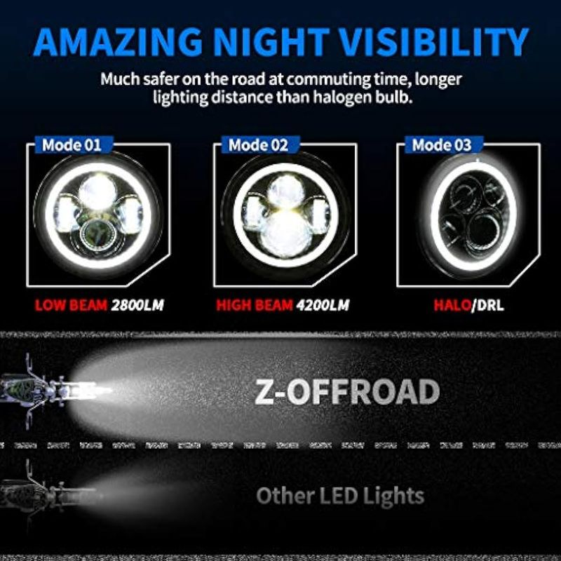 Z-OFFROAD Faro LED negro de 7 pulgadas + luces antiniebla de 4-1/2 pulgadas con DRL kit de faros