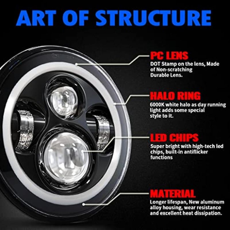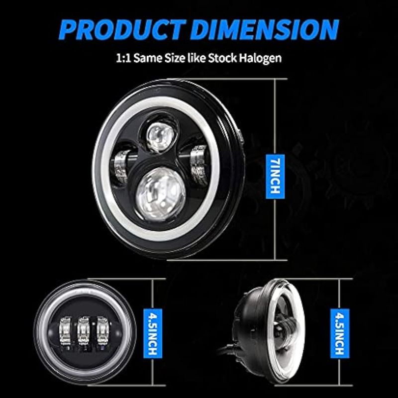 RODADOSMOTOSZ-OFFROAD Faro LED negro de 7 pulgadas + luces antiniebla de 4-1/2 pulgadas con DRL kit de faros