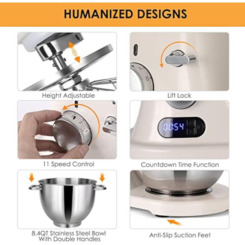 ZACME Batidora de pie comercial de 8.4 cuartos de galón de 800 W con cuerpo fundido de aluminio y