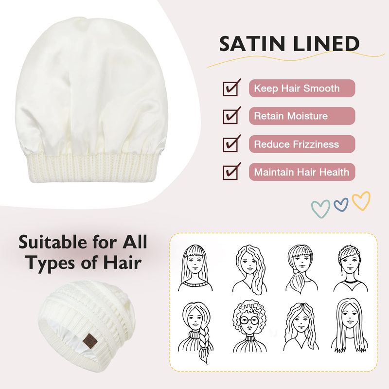 ZANDO GORROS DE PUNTO GRUESO CON FORRO DE SATéN PARA MUJER, CáLIDOS GORROS DE INVIERNO PARA MUJER