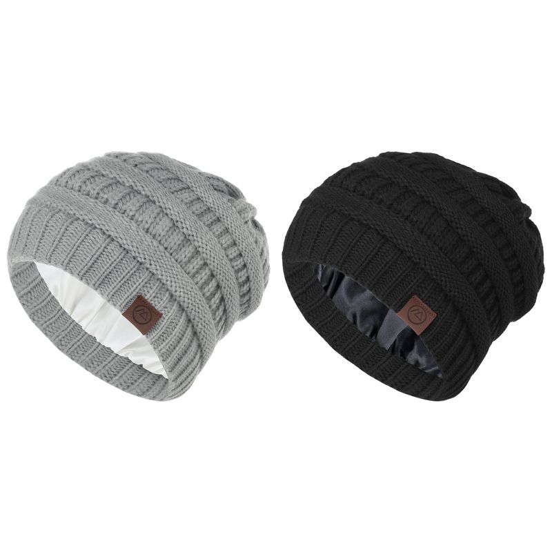 ZANDO GORROS DE PUNTO GRUESO CON FORRO DE SATéN PARA MUJER, CáLIDOS GORROS DE INVIERNO PARA MUJER