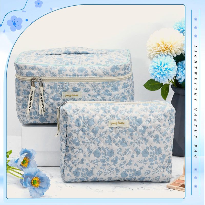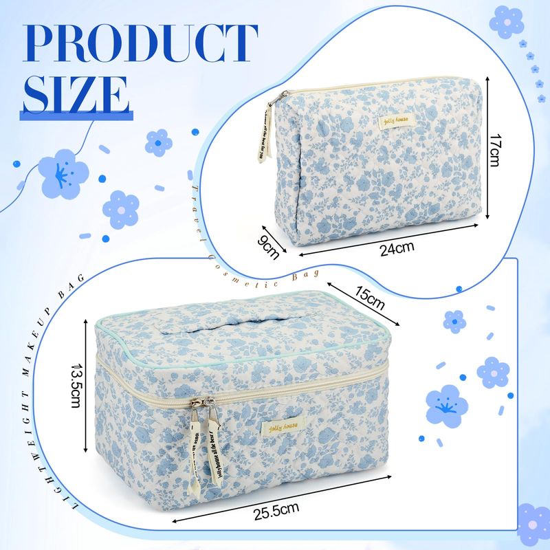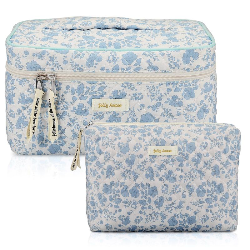 Zeyune 2 bolsas de maquillaje acolchadas de algodón, bolsa de maquillaje grande de coqueta de viaje,
