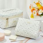 Zeyune 2 bolsas de maquillaje acolchadas de algodón, bolsa de maquillaje grande de coqueta de viaje,