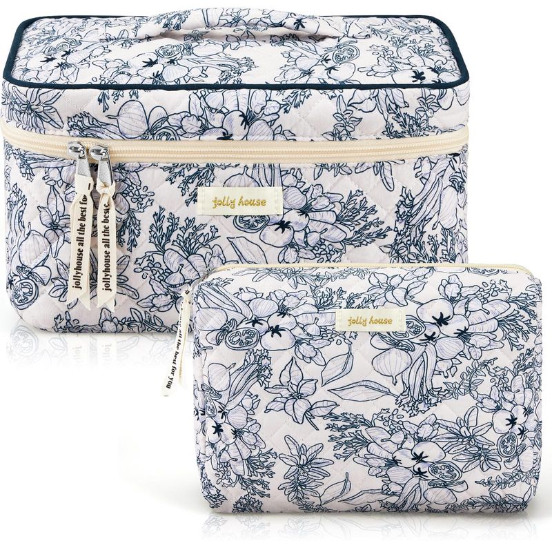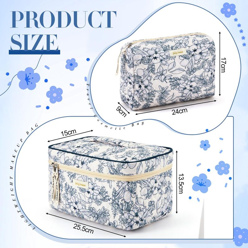 Zeyune 2 bolsas de maquillaje acolchadas de algodón, bolsa de maquillaje grande de coqueta de viaje,