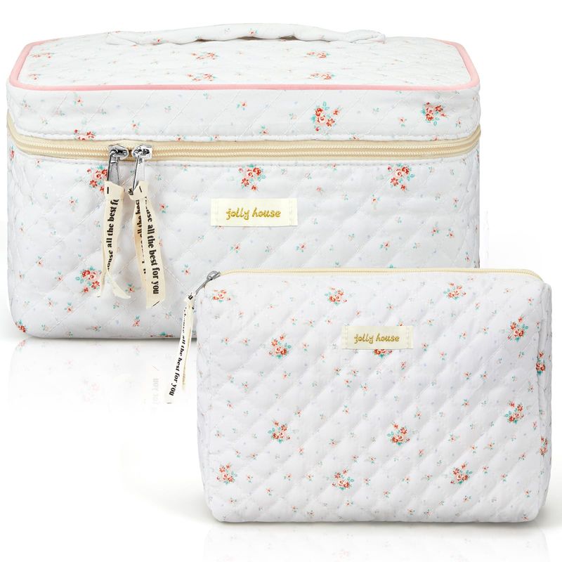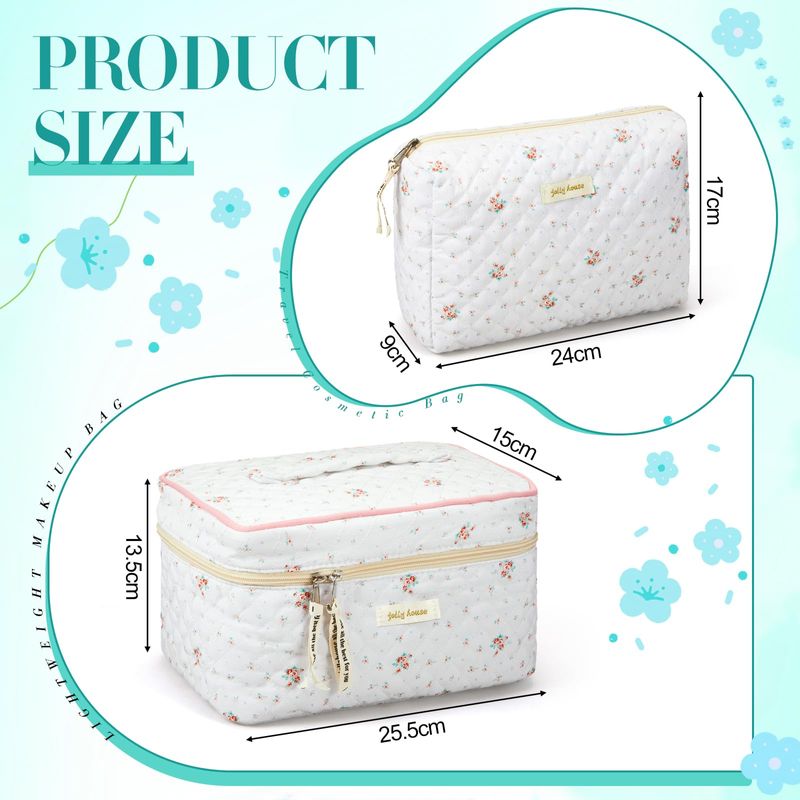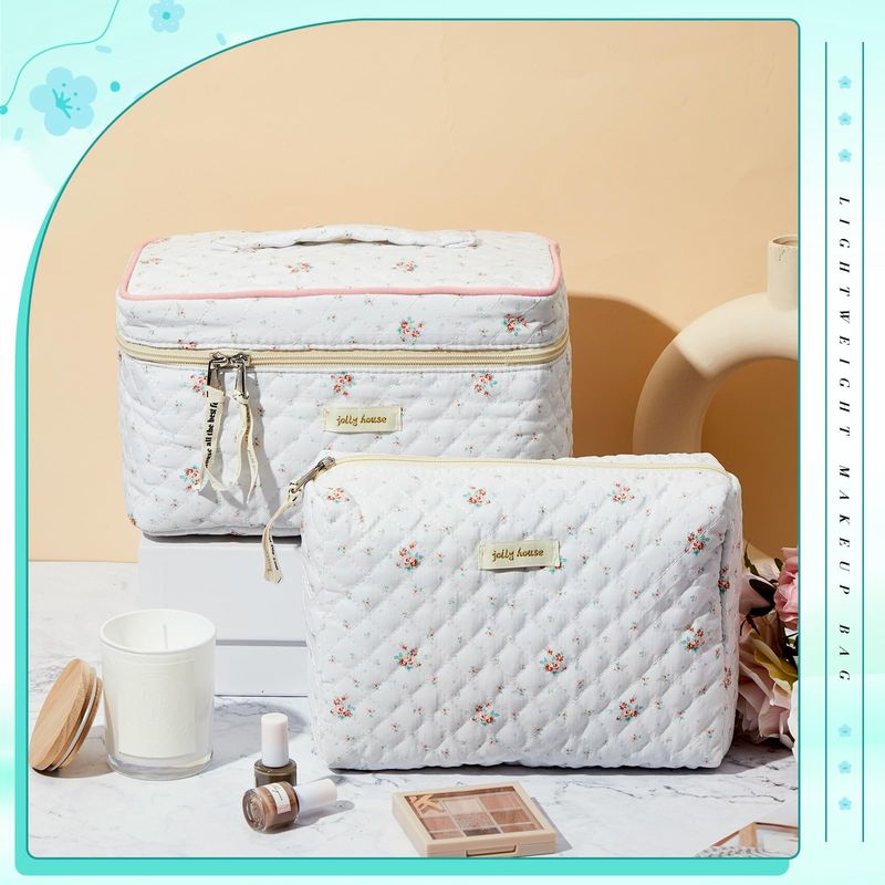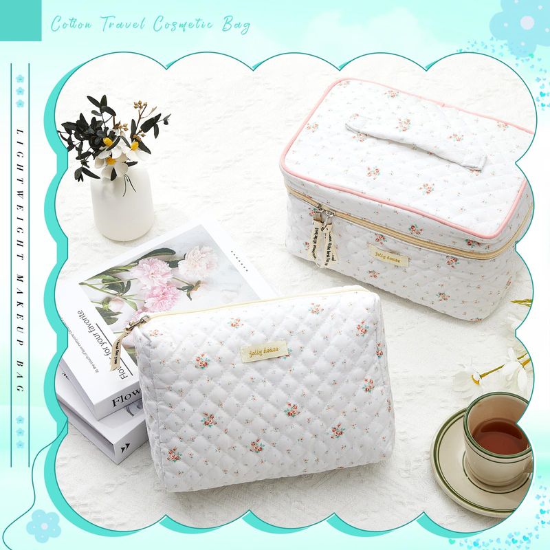 Zeyune 2 bolsas de maquillaje acolchadas de algodón, bolsa de maquillaje grande de coqueta de viaje,
