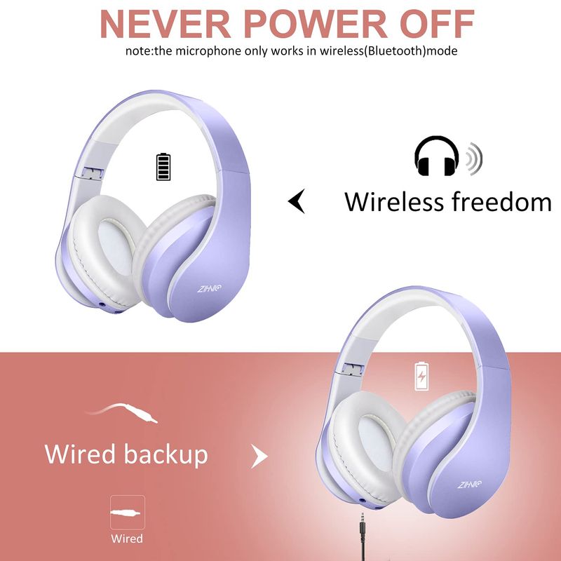 Zihnic - Audífonos bluetooth circumaurales, estéreo inalámbricos y cableados plegables Micro SD /