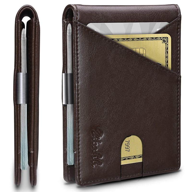 Zitahli Billeteras delgadas para hombre, con clip para dinero, ranuras de cuero delgado, soporte