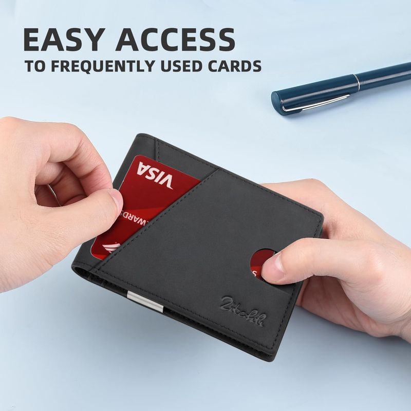 Cartera delgada para hombre: la cartera minimalista tiene un grosor de 12 pulgadas, tamaño de 4.4 x 3.1 pulgadas con clip para dinero tiene 11 ranuras para tarjetas que pueden almacenar hasta 12 tarjetas. La cartera delgada para hombre cabe perfectamente en tu bolsillo frontal y es muy adecuada para el transporte diario como una cartera grande pero delgada.
