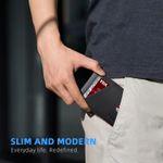Cartera delgada para hombre: la cartera minimalista tiene un grosor de 12 pulgadas, tamaño de 4.4 x 3.1 pulgadas con clip para dinero tiene 11 ranuras para tarjetas que pueden almacenar hasta 12 tarjetas. La cartera delgada para hombre cabe perfectamente en tu bolsillo frontal y es muy adecuada para el transporte diario como una cartera grande pero delgada.
