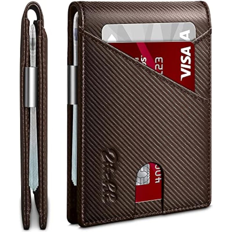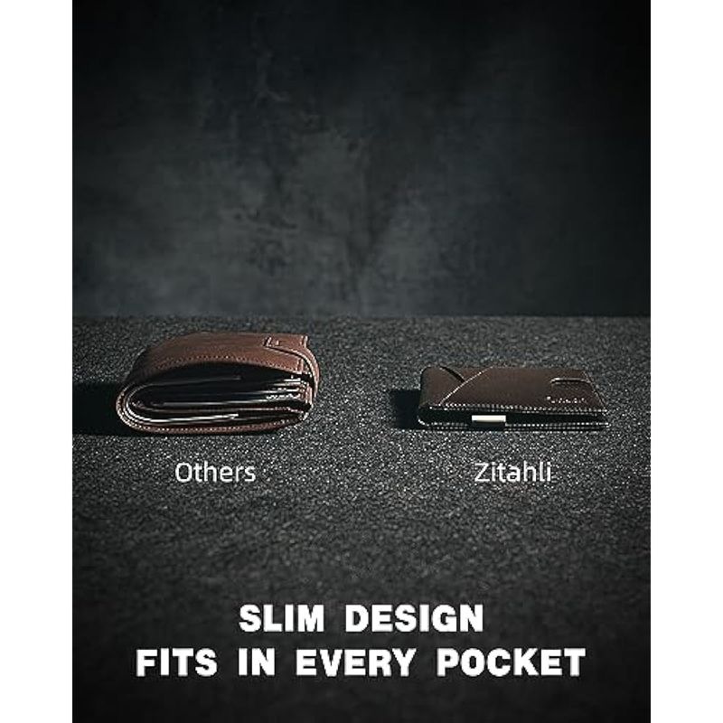 Zitahli Billeteras delgadas para hombre, con clip para dinero, ranuras de cuero delgado, soporte