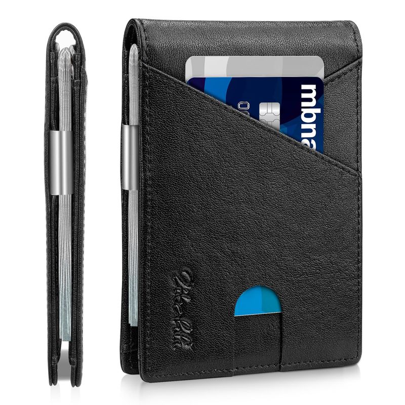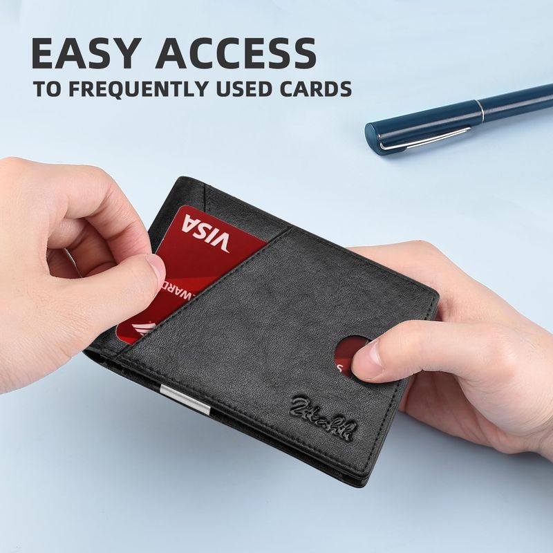 Zitahli Billeteras delgadas para hombre, con clip para dinero, ranuras de cuero delgado, soporte