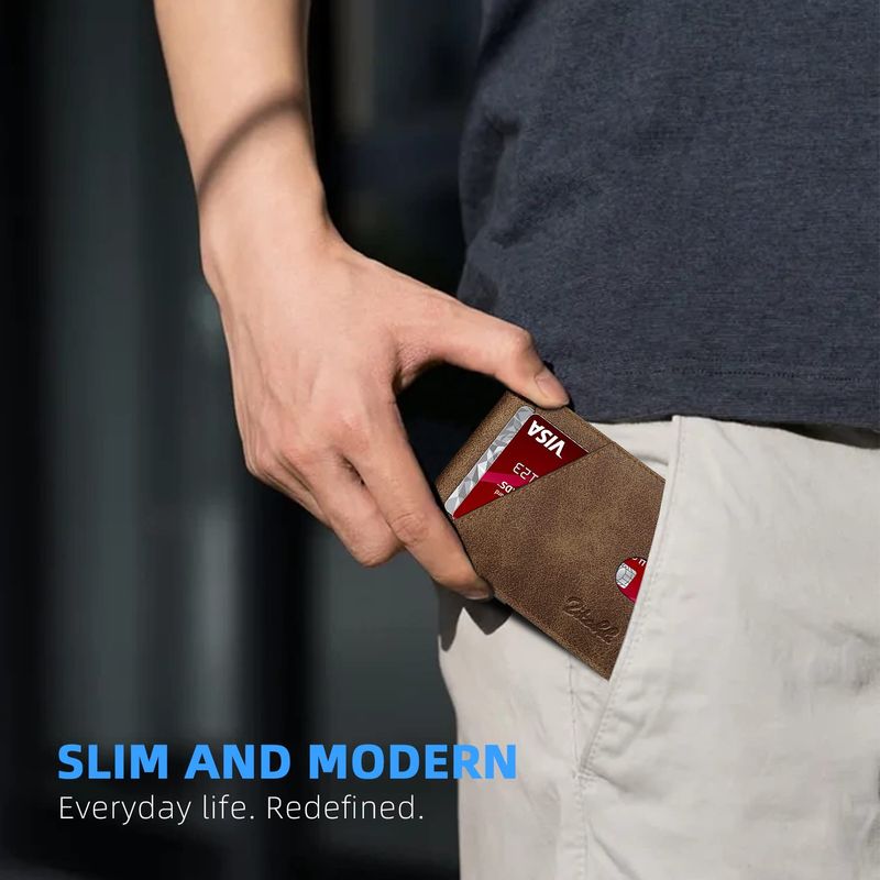 ZITAHLI BILLETERAS DELGADAS PARA HOMBRE, CON CLIP PARA DINERO, RANURAS DE CUERO DELGADO, SOPORTE PARA TARJETAS DE CRéDITO, BLOQUEO RFID, BILLETERA MINIMALISTA PLEGABLE CON CAJA DE REGALO, CHOCOLATE, MODERNO