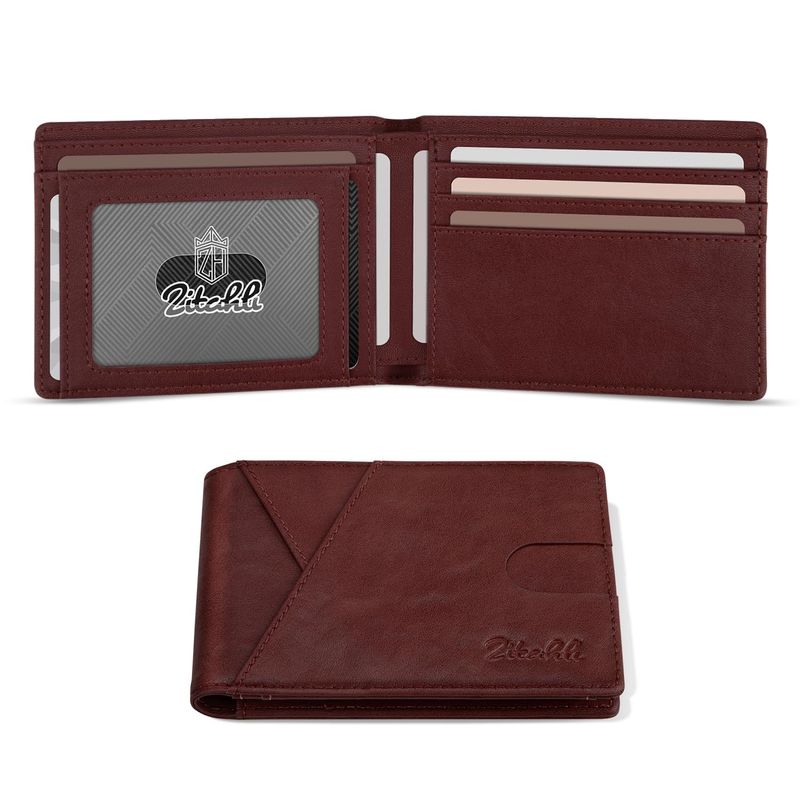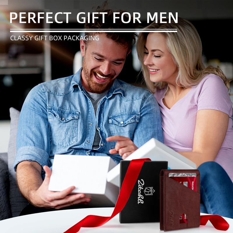 Zitahli Carteras de los hombres Slim Rfid cuero plegable con caja de regalo, Negro carbón, Casual