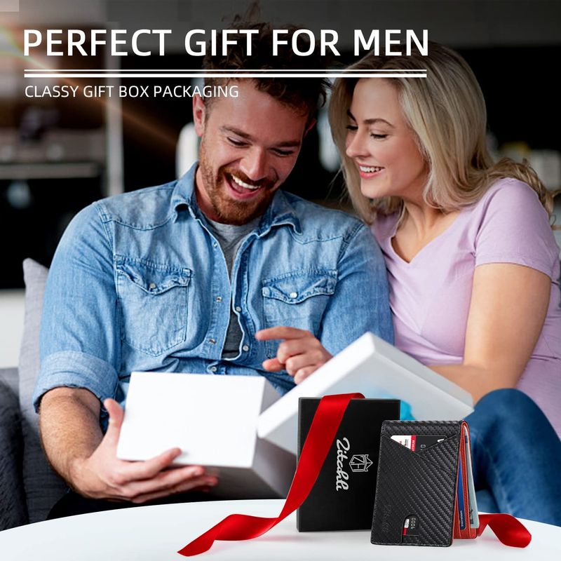 Zitahli Carteras de los hombres Slim Rfid cuero plegable con caja de regalo, Negro carbón, Casual