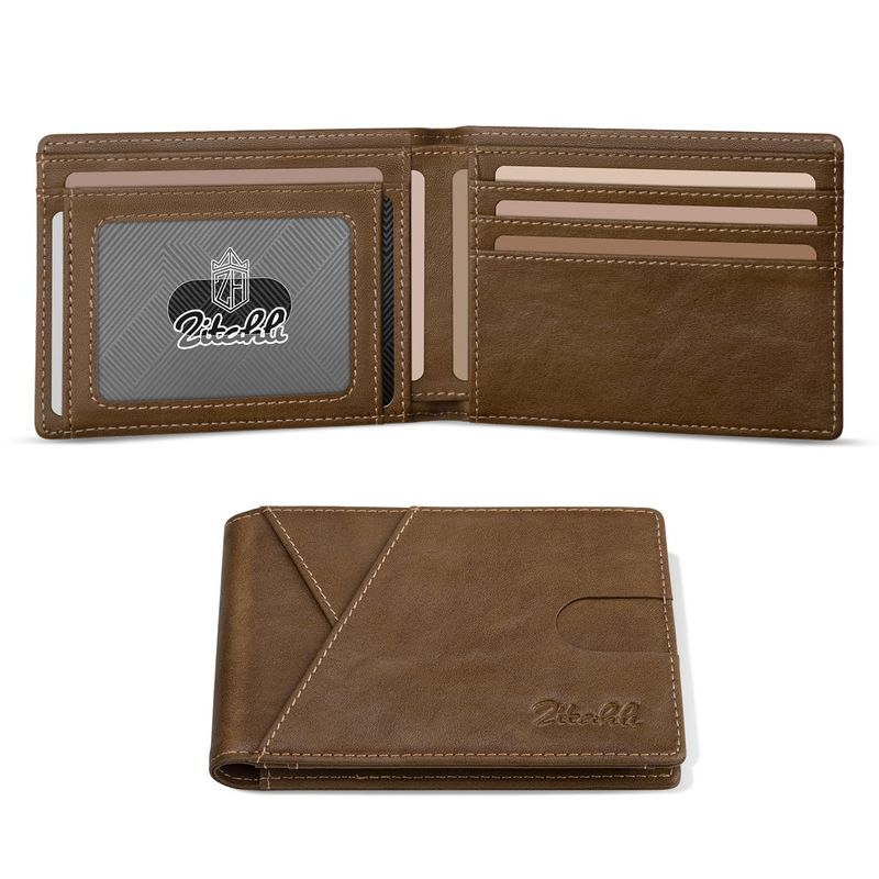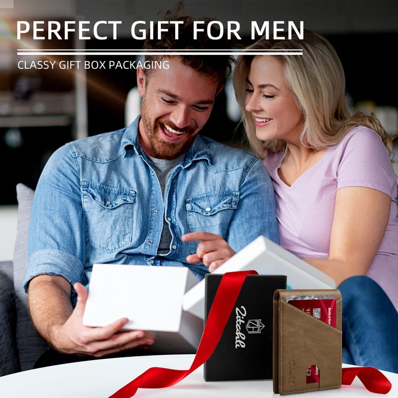 Zitahli Carteras de los hombres Slim Rfid cuero plegable con caja de regalo, Negro carbón, Casual