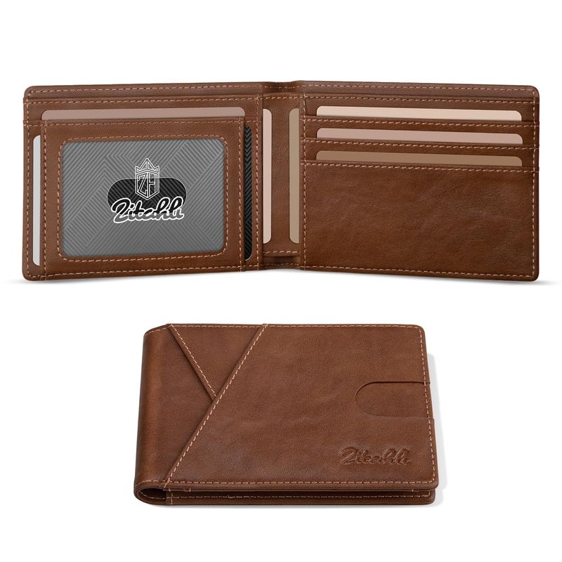 Zitahli Carteras de los hombres Slim Rfid cuero plegable con caja de regalo, Negro carbón, Casual